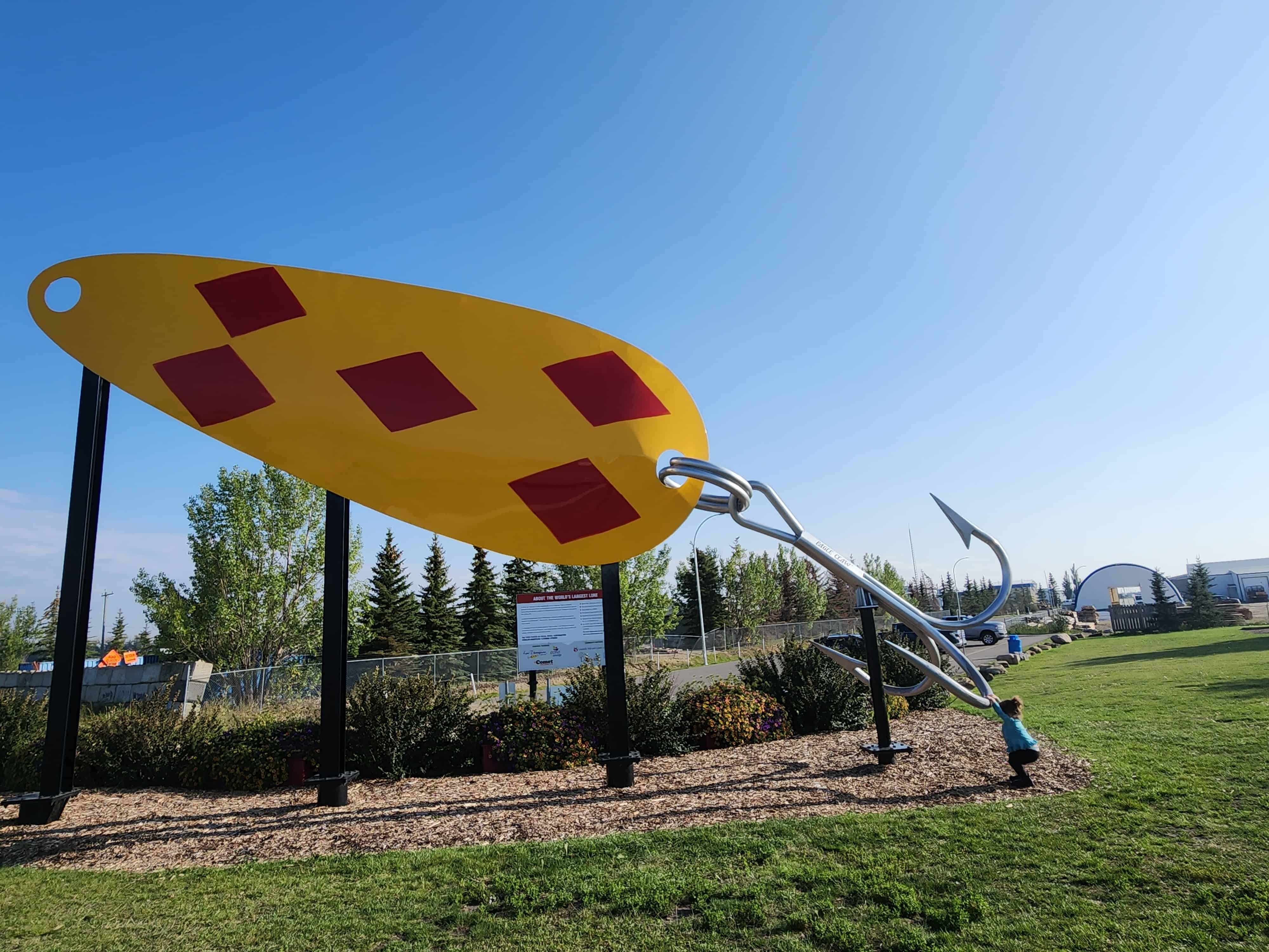 My little fishy at the World's Largest Fishing Lure in Lacombe Alberta Canada
