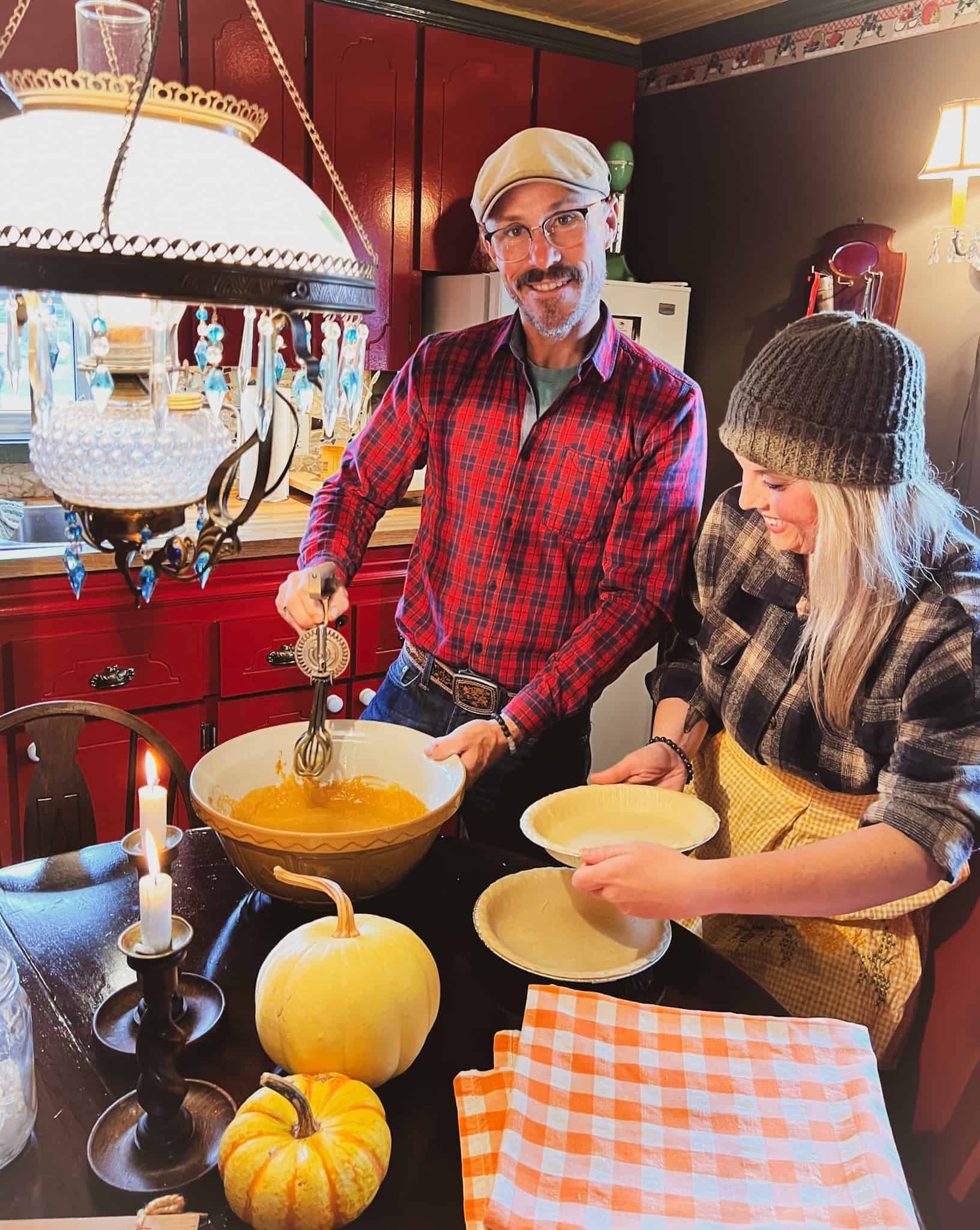 What does one do when visiting The Historic Pumpkin House on a rainy day? Bake a NL pie of course-pumpkin pie for pumpkin season. Designer Charlie even broke out the antique hand held mixer for fun.