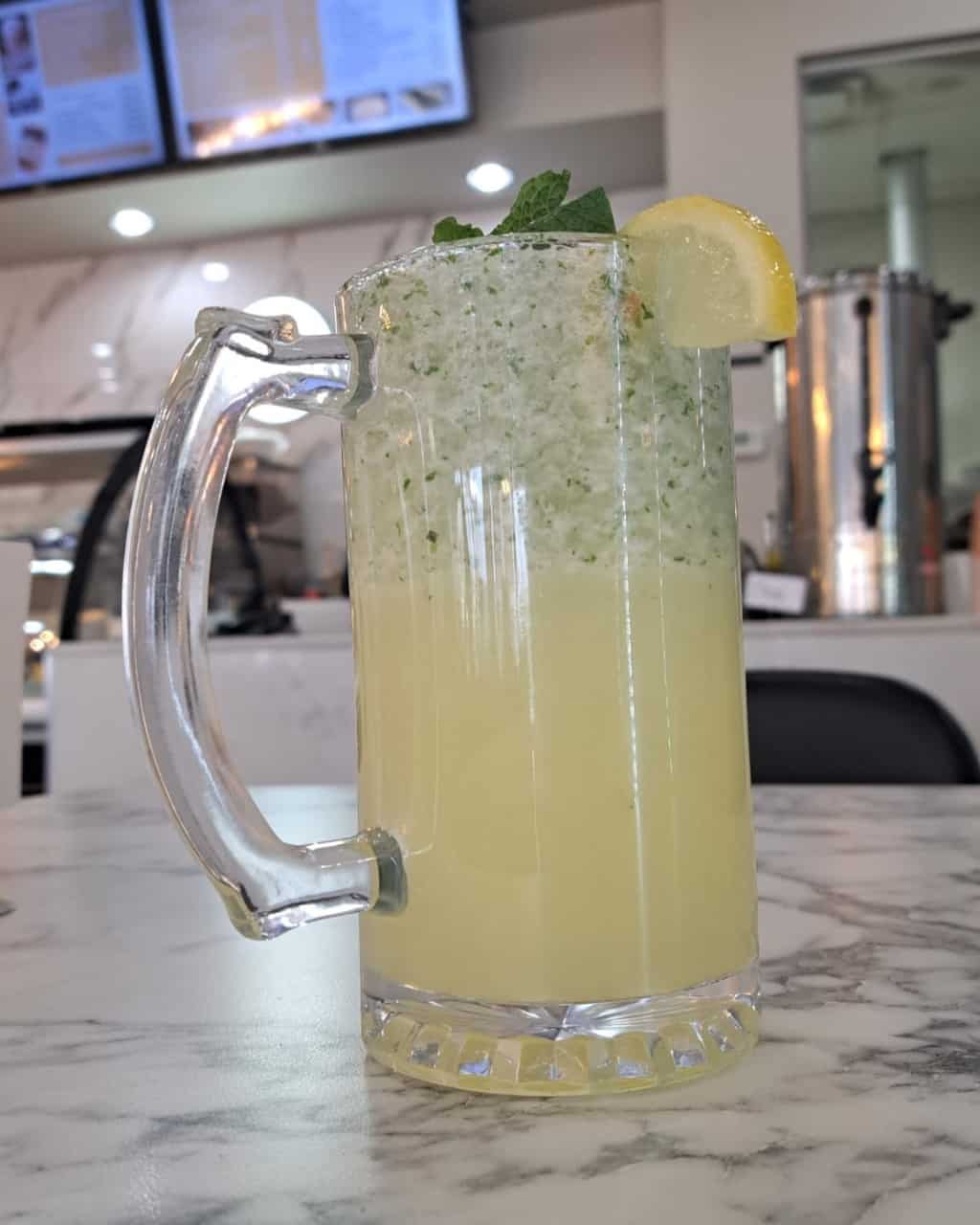 I ordered the freshly made mint lemonade from Cedar Sweets Restaurant in Edmonton, Alberta. It was refreshing and not sweet like the type you would buy in a bottle or a can.