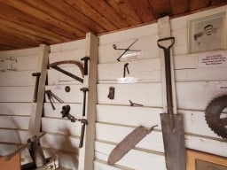 Tom Sukanens body was exhumed from its grave in North Battleford, then re-interred next to his dream ship in 1976. In order to do burials a piece of ground needed to be designated as a cemetery, and to do that, a church has to be on the same property, thus the tiny white church beside Toms grave at the Sukanen Ship Museum, Moose Jaw, Saskatchewan.