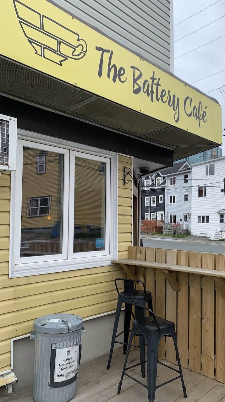 The outdoor patio is also an option for customers. In warmer weather this would be a popular spot because of the coastline views from the patio seating at The Battery Café in St. John's, Newfoundland, Canada.