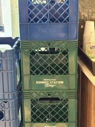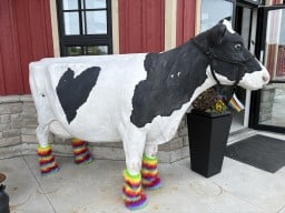 The lit up outdoor pavillion seating is the perfect spot to enjoy ice cream and other treats purchased in the store. There are outdoor games such as corn hole for people to enjoy on their visit.