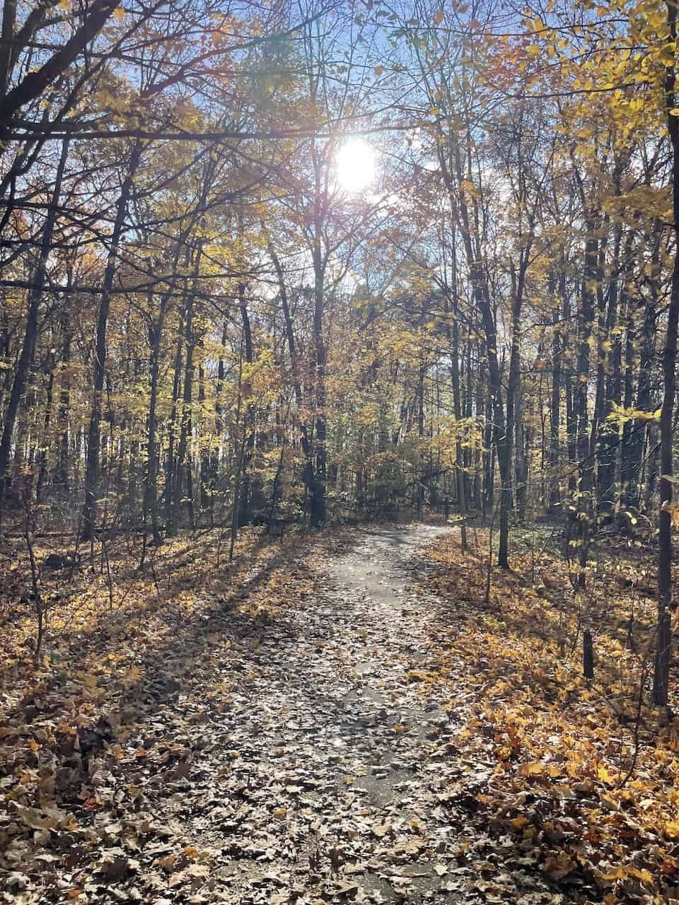 Autumn is such a beautiful time of year to hike along the escarpment. The colourful leaves provide a canopy over the trails in Kinsmen Park in Beamsville, Ontario, Canada.