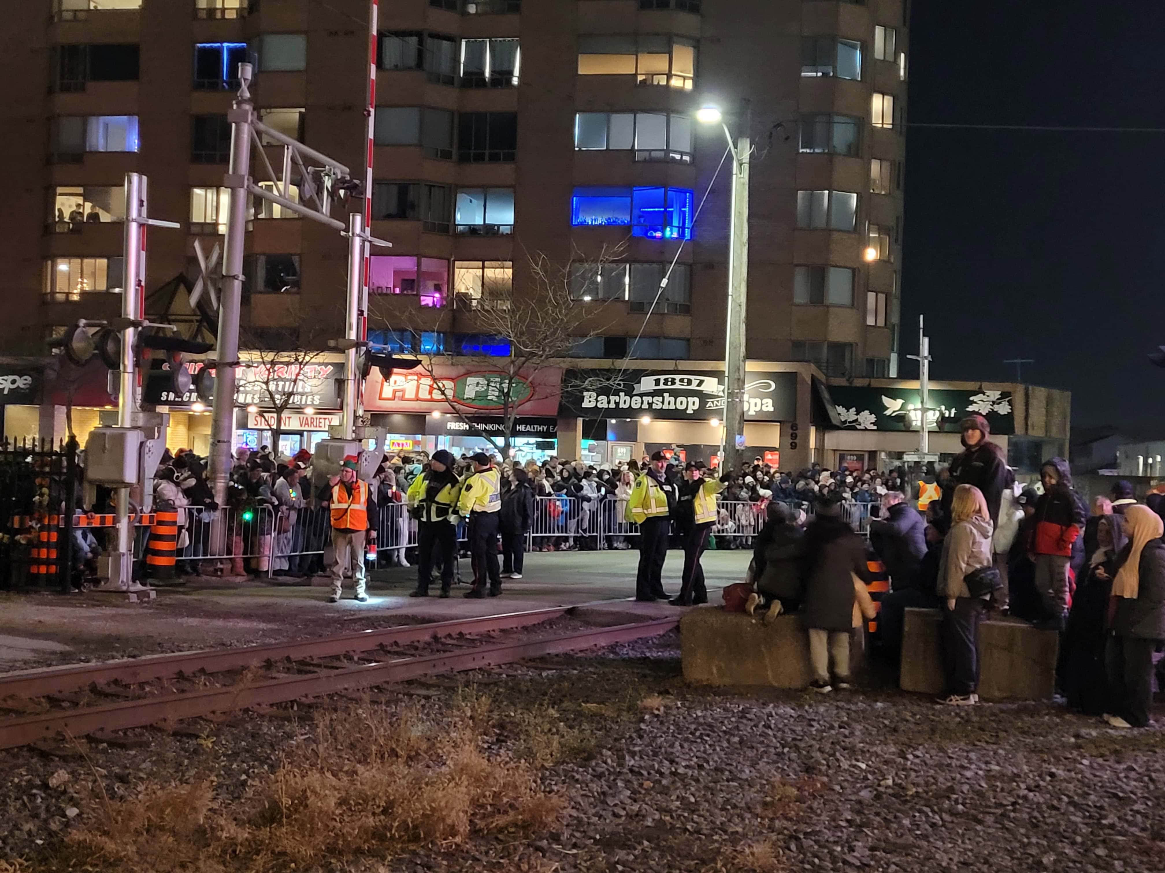 Excited spectators eagerly await the arrival of the CPKC Holiday Train in London, Ontario. The festive buzz filled the air as families, friends, and neighbours come together to share in this annual tradition.