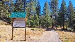 A quiet forest viewpoint shows the gentle flow of Cherry Creek Falls Kimberley BC. Also, the cool shade makes it the perfect place to pause and soak up the forest atmosphere.