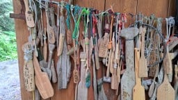 We stopped at the cook shelter on Lanezi Lake, enjoying a picnic on the shoreline. The shelter has plexiglass windows, and there’s a helicopter landing pad in case any backcountry adventurers need a rescue.