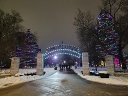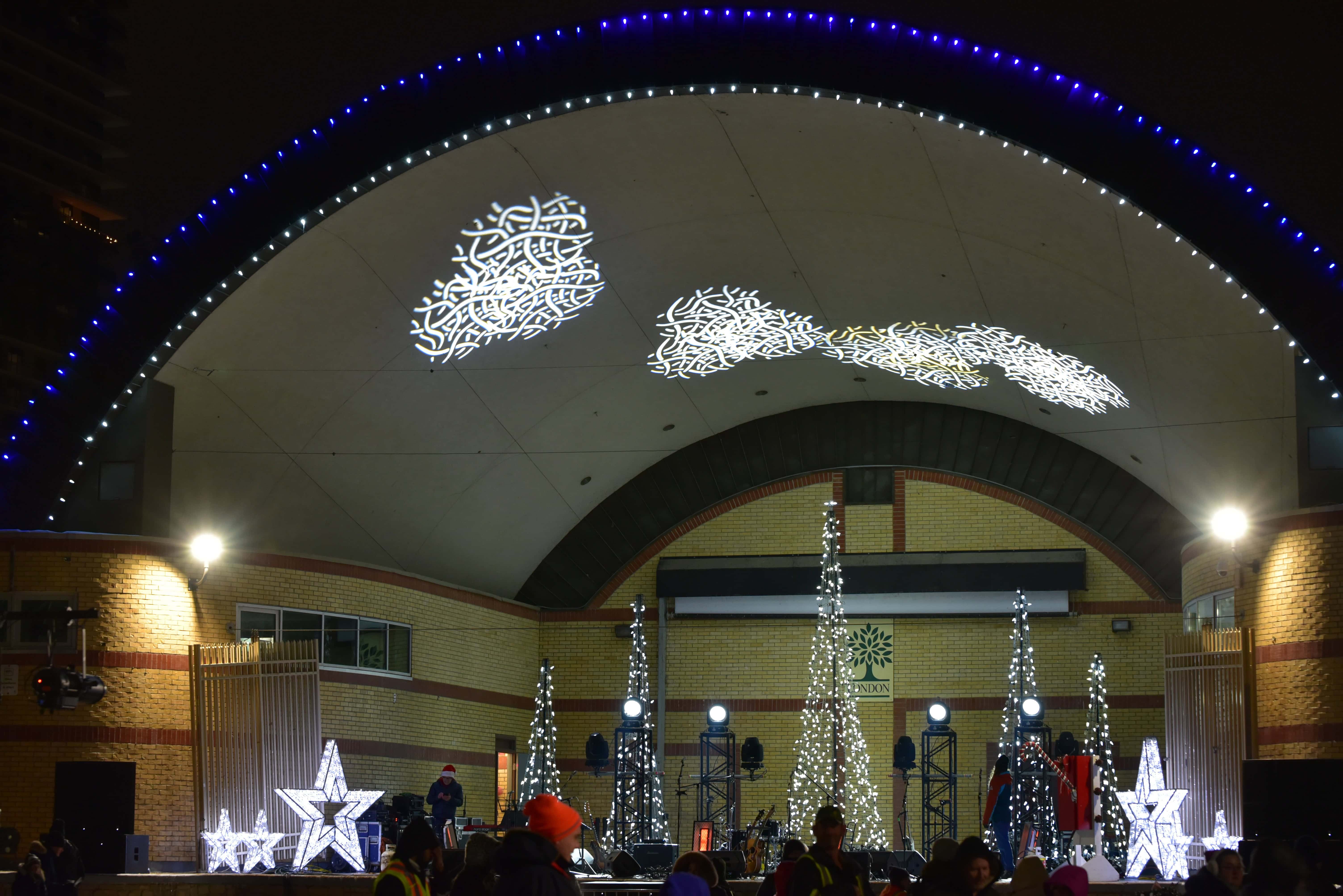 The Park slowly fills as crowds wait for Mayor Josh Morgan and John Davidson to lead the official countdown at the Lighting of the Lights in Victoria Park, Ontario, Canada.
