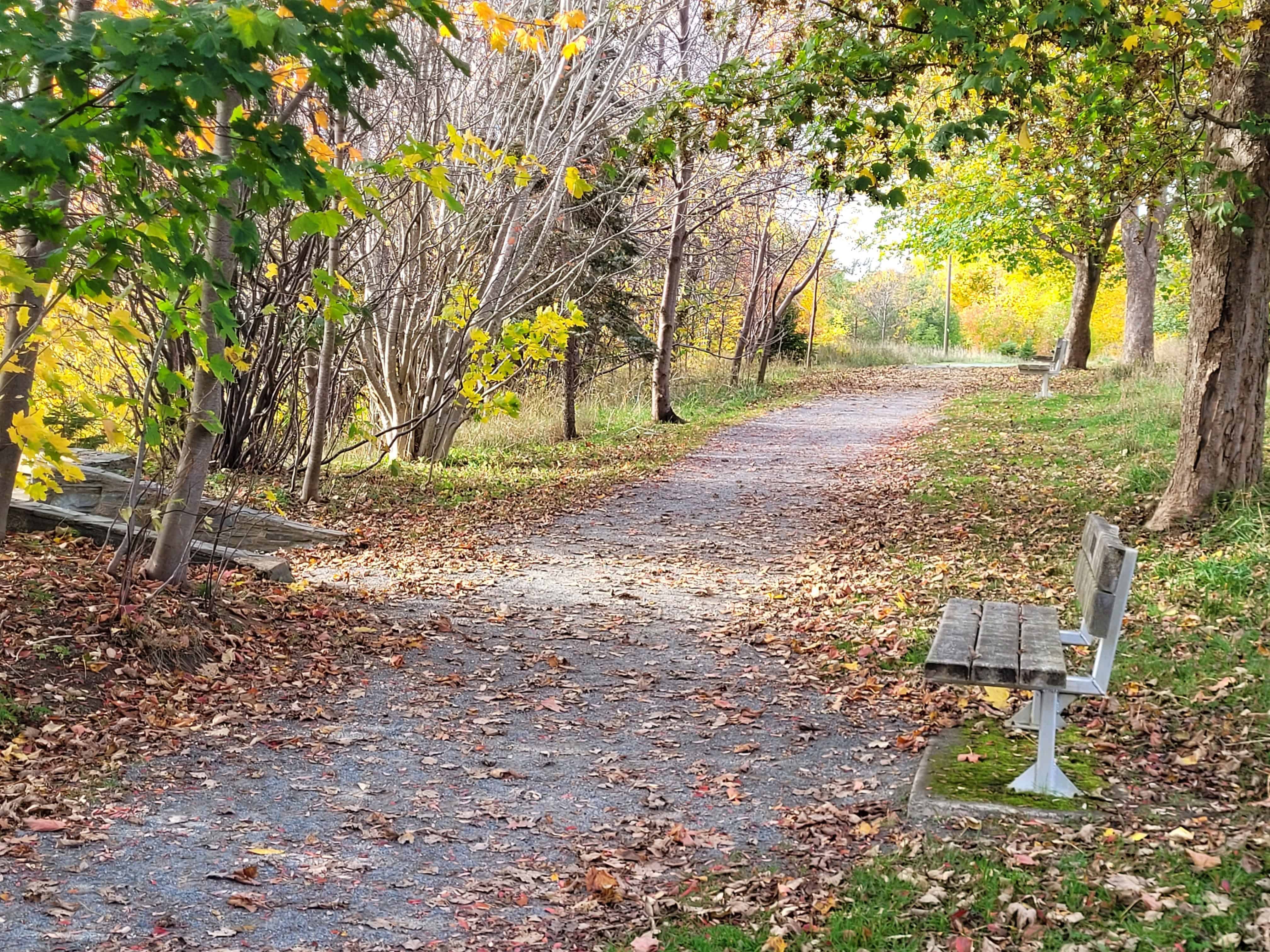 A peaceful bench with a stunning view along Rennie’s River Trail in St. John’s, Newfoundland. Perfect for a rest stop while enjoying the natural beauty of the river and surrounding landscape.