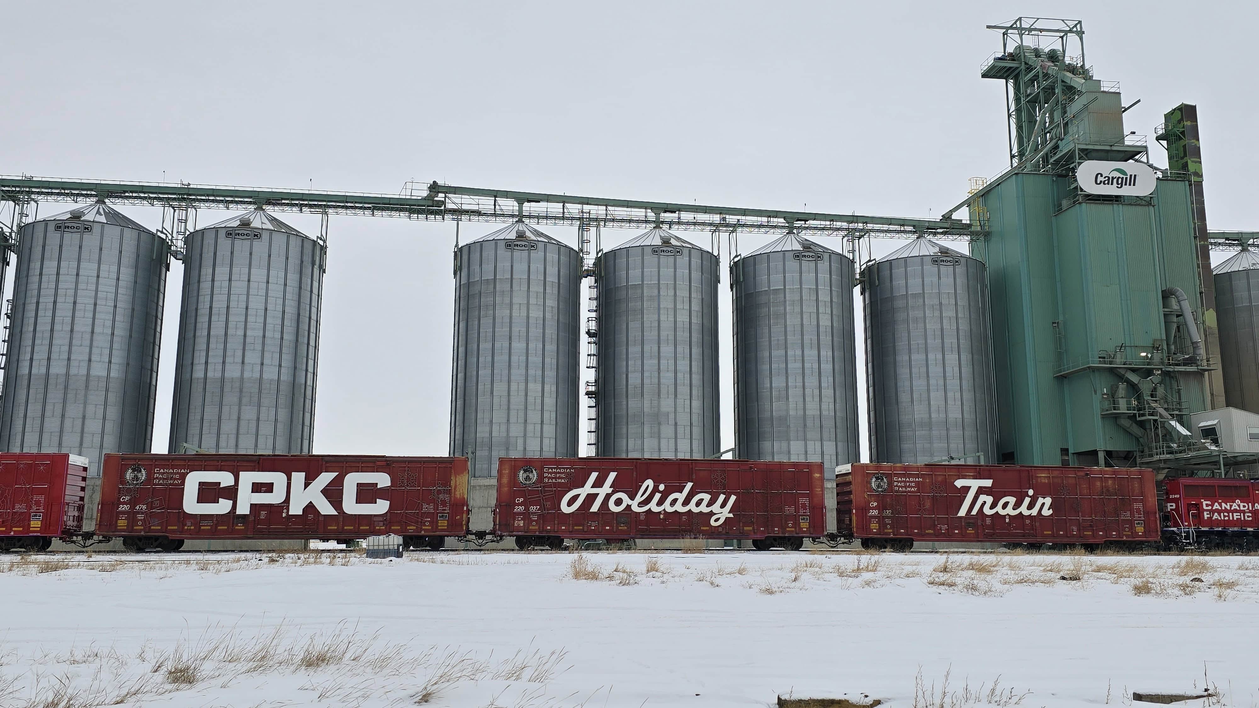 Typical southern Alberta backdrop for the 2025 CPKC Holiday Train in Blackie.