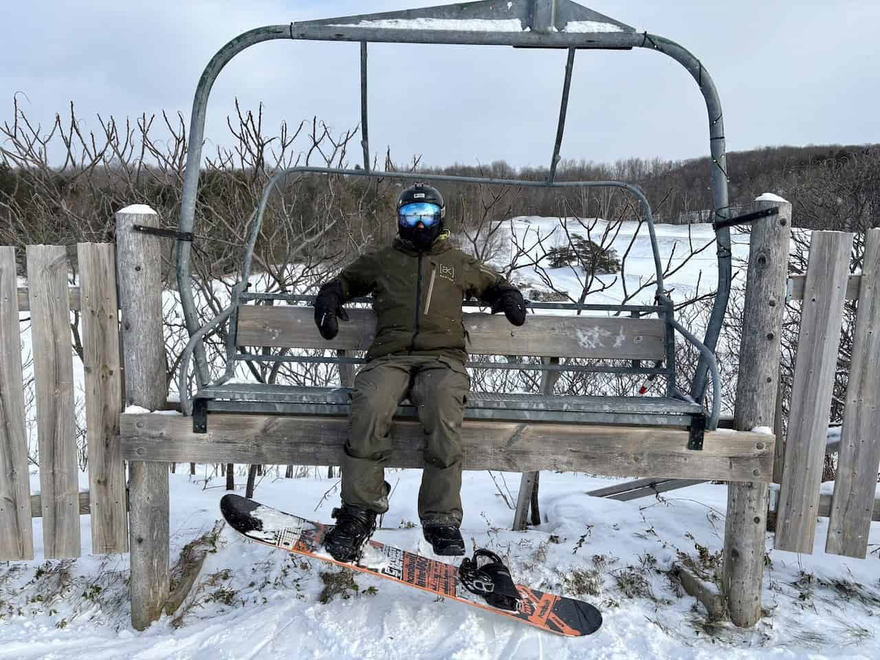 This retired chair from the lift was the ideal spot to take moment to rest your legs at Hockley Valley Resort in Mono, Ontario, Canada.