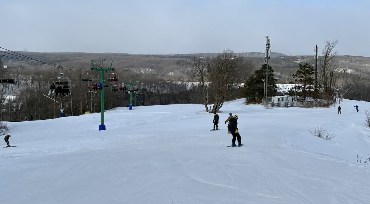Trails at Hockley Valley Ski Resort in Mono, Ontario, are carefully groomed and clearly marked. There are a variety of hills for all skill levels of skiers and snowboarders.