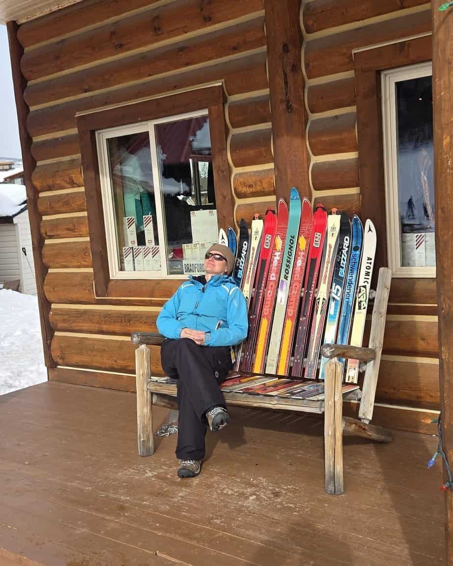 After a full day skiing at Kimberley Alpine Resort, sometimes the best place to sit down is wherever there is a bench made of skis. A quick rest after a day on the mountain.