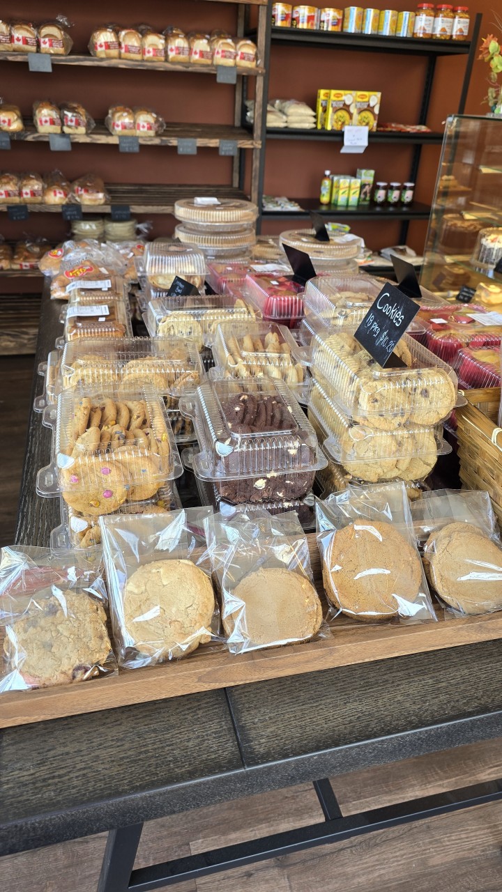 Assorted cookies and packaged baked goods available at Mountain House Bakery in Red Deer.