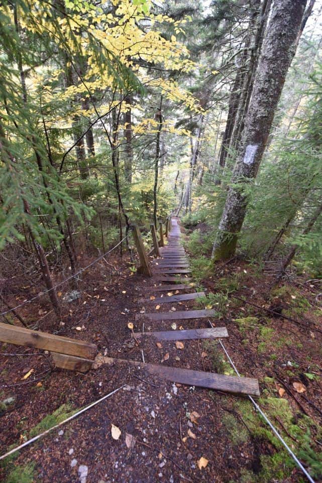 The Fundy Footpath is a 41 km (25.5 mi) wilderness hiking trail that stretches from Goose River, on the border of Fundy National Park to the Fundy Trail Provincial Park Interpretive Center at Big Salmon River near St. Martin's, NB. Amazingly, it traverses the longest undeveloped stretch of coastline on the eastern seaboard, ascending and descending steep ravines, skirting dramatic cliffs, and weaving through dense Acadian forest. While not long, this footpath is seriously demanding, with constant ups and downs amounting to 2,501 m (8,205 ft) of elevation change. As a result, hikers must navigate slippery slopes, scramble over rocks, tackle wooden step ladders, skirt the edge of 300 m drops, and make numerous river crossings, three of which must be timed with the tides. For most people, the trail takes 3-5 days to complete. Not for the feint of heart, this is a true wilderness adventure!